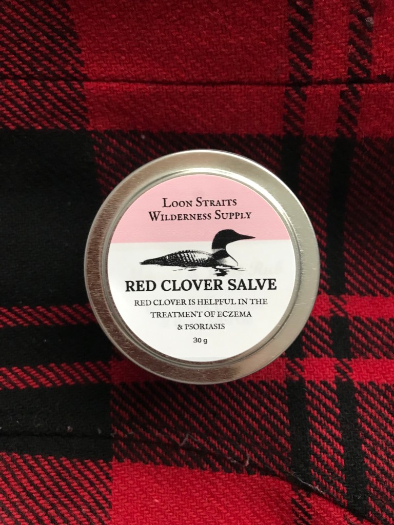Made with Red Clover wildcrafted from Loon Straits, and Calendula collected from our organic gardens, with a base of olive oil, beeswax & Vitamin E. Red Clover is known to be helpful in the treatment of Eczema & Psoriasis.